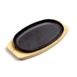 PLANCHA GRIL OVAL HIERRO C/ BASE MADER. D24x14CM