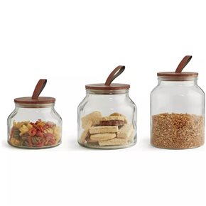 RECIPIENTE VIDRIO 2L TAPA MADERA Y CUERO