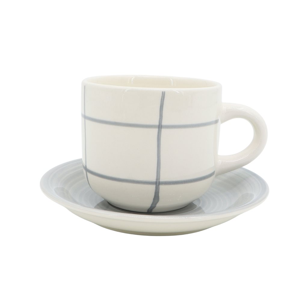 TAZA DE TE 350ML CON PLATO CERAMICA QUADRA BLANCO/GRIS