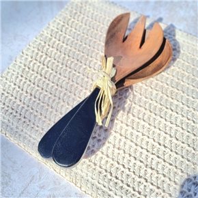 CUBIERTOS P/ENSALADA EXT COL NEGRO 25CM MAD ACACIA