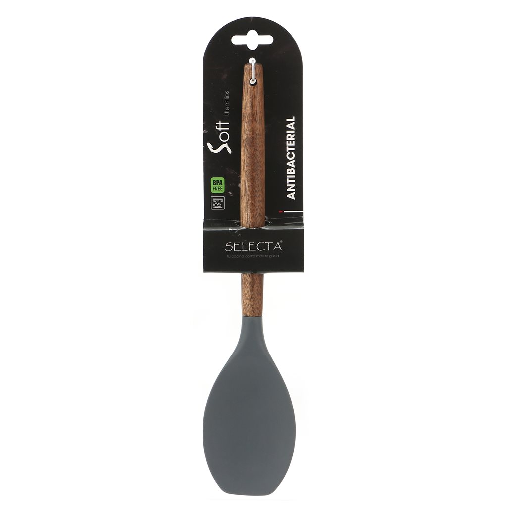 CUCHARA SILICONA RECTA 31CM MANGO ACACIA GRIS