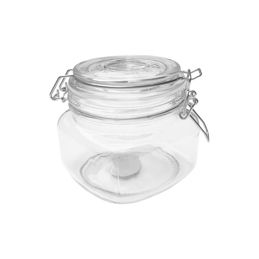 RECIPIENTE VIDRIO SEMICUADRADO 500ML TAPA BROCHE 11X11X11CM