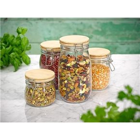 RECIPIENTE VIDRIO 2000ML TAPA MADERA/BROCHE D12.5XH25.5CM