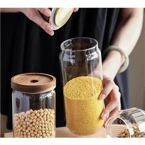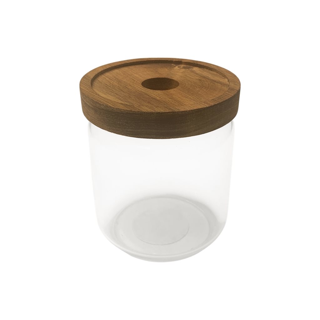 RECIPIENTE BOROSILICATO 400ML TAPA MADERA ACACIA D9XH10CM