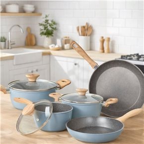 BATERIA COCINA 8PZAS ANTIADHERENTE ALUM.FUND.AZUL