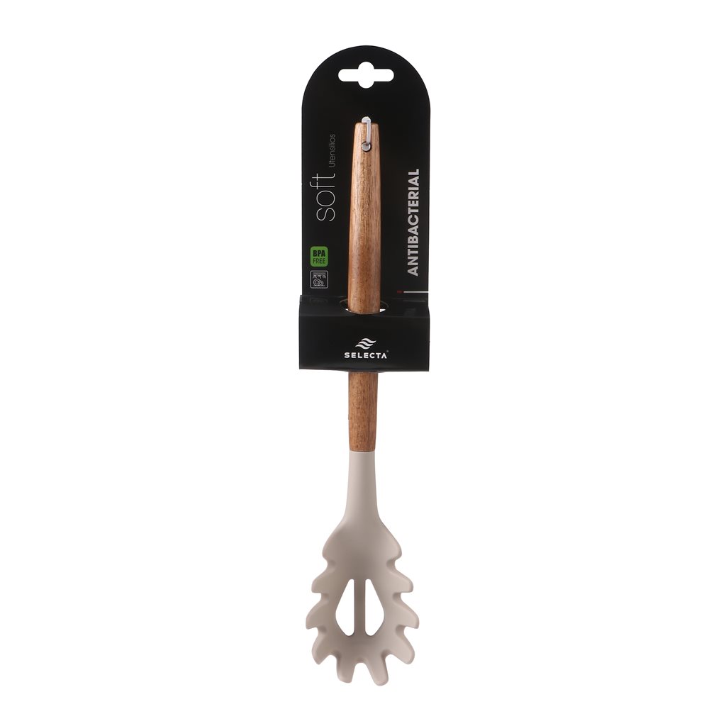 CUCHARA PASTA SILICONA 31CM MANGO ACACIA BEIGE