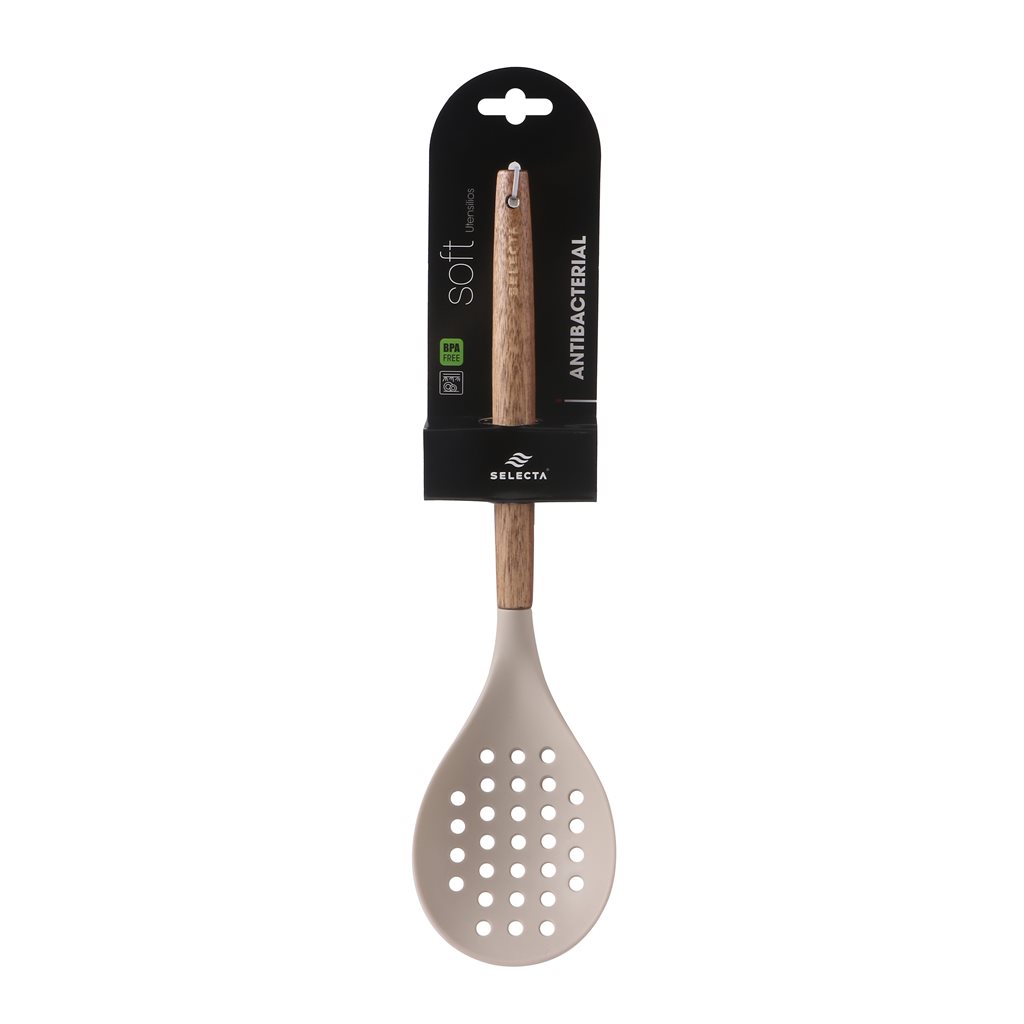 ESPUMADERA SILICONA 31CM MANGO ACACIA BEIGE