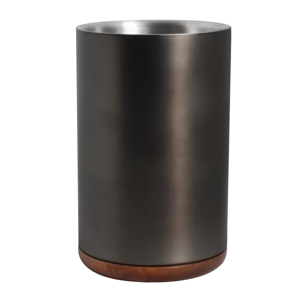 PORTA BOTELLA BASE MADERA EXT. NEGRO MATE D12X18CM