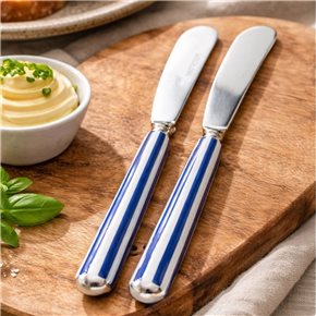 SET X2 CUBIERTO MANTEQUILLA MANGO RAYAS AZUL "BARCELONA"