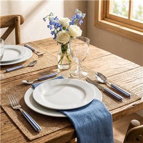 SET 24 PIEZAS CUBIERTOS MANGO RAYAS AZUL "BARCELONA"