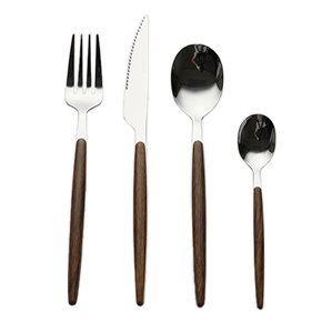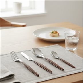 SET 24 PIEZAS CUBIERTOS MANGO MADERA "LISBOA"