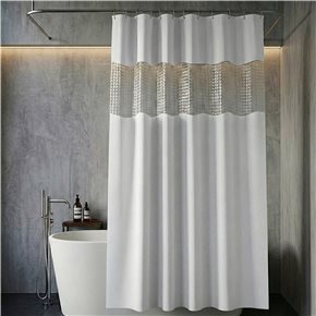 CORTINA DE BAÑO C/VISOR C/GANCHOS 180x200CM BLANCO