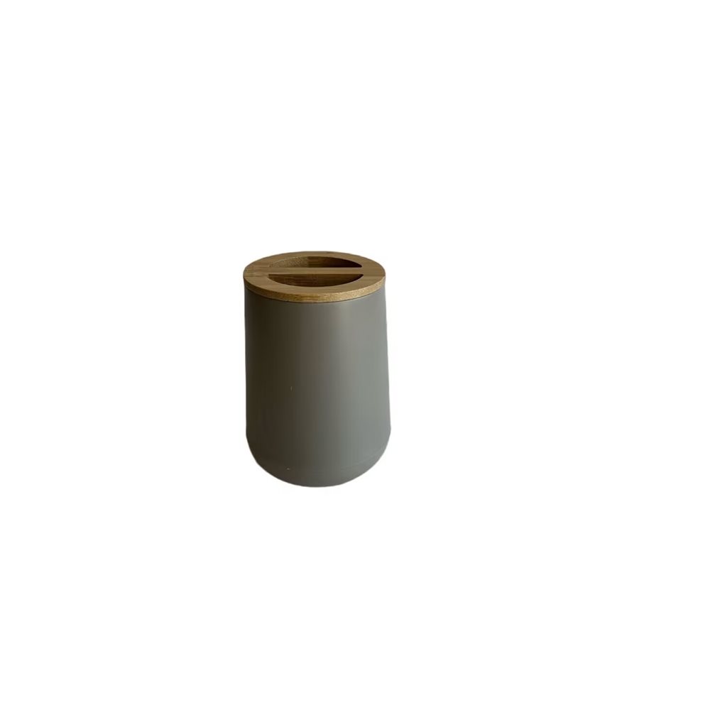 VASO PORTACEPILLOS EN PLASTICO Y MADERA BEIGE