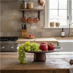 BANDEJA C/BASE D20x7.5CM PLATA/NEGRO