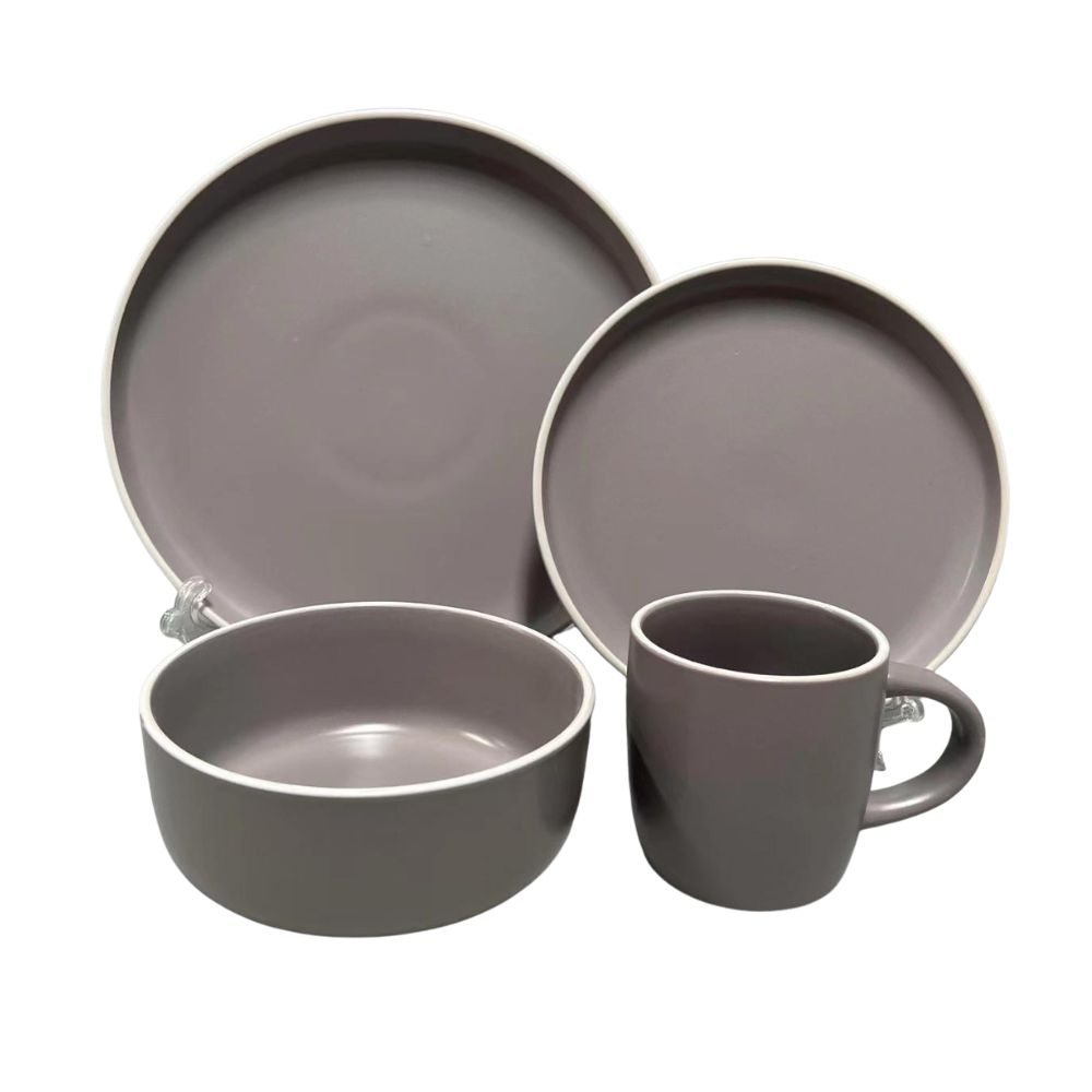 JUEGO VAJILLA 16PCS 27/20/15/350ML ALA RECT GRIS