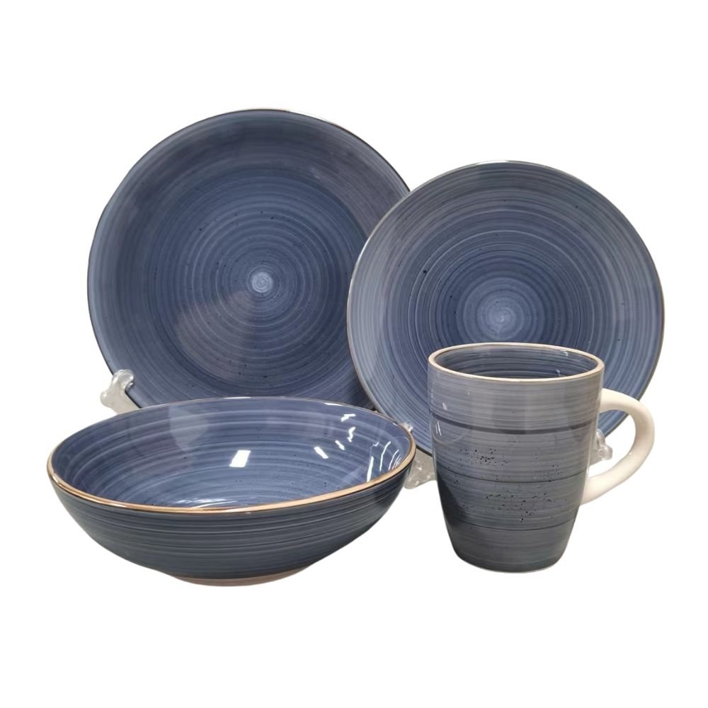 JUEGO VAJILLA 16PCS 25/20/18/385ML CELESTE C/BORDE