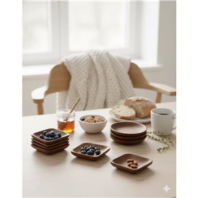 SET X4 COPETINEROS CUAD. MADERA 13X13X2.5CM