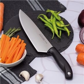 Es la herramienta multiusos de los profesionales y cocineros aficionados que limpia, corta y pica todo tipo de carnes, vegetales, aves y pescados. Confort y ligereza con un diseño actual.