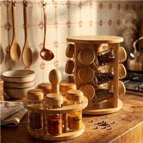 SET 5PCS ESPECIERO SOPORTE MADERA. H20/D18.5CM