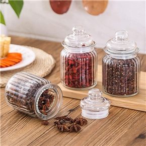 SET X3 RECIPIENTES D8xH12.5CM 300ML VIDRIO C/TAPA