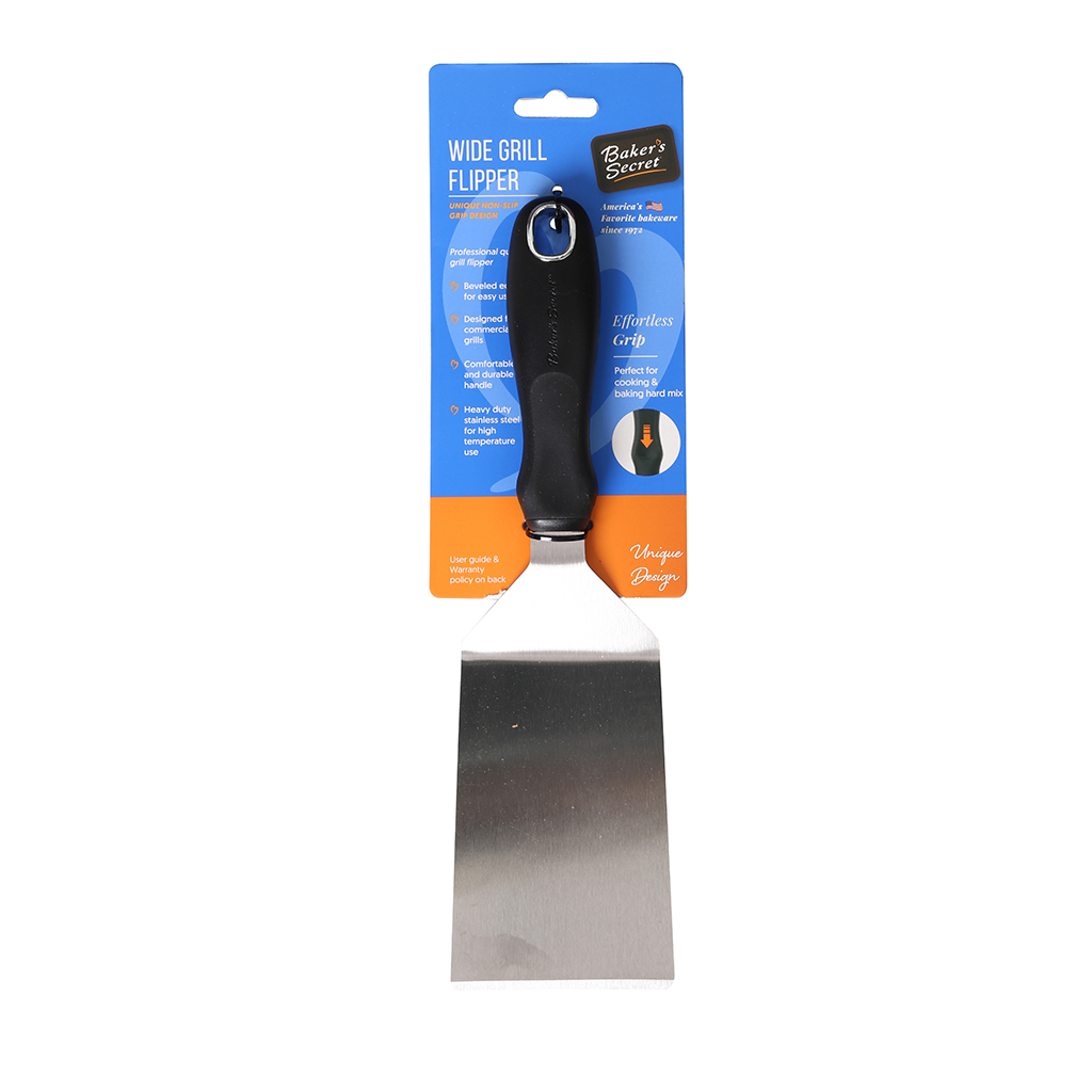 Levanta, voltea y sirve panqueques, galletas, filetes de pescado y otros alimentos finos y delicados con esta espátula de acero inoxidable. Agarre cómodamente su espátula brillantemente pulida con su mango de polipropileno ergonómicamente diseñado y disfrute de sus comidas.