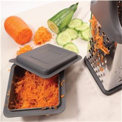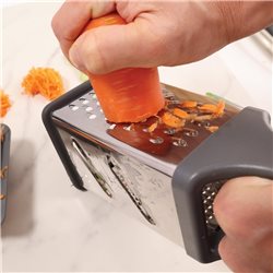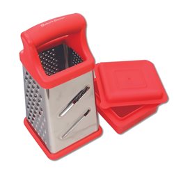 El rallador 4 caras de Bakers Secret permite rallar alimentos y quesos de forma fácil y sin problemas. Este rallador de caja cuenta con un mango superior ergonómico para una comodidad y agarre superiores, así como una superficie de rejilla de acero inoxidable resistente a la corrosión y una hoja de corte. Úselo en vegetales, frutas, chocolate, pan, quesos y casi cualquier otra cosa para crear deliciosas recetas. El envase se puede utilizar por separado, y son 3 tazas de capacidad.