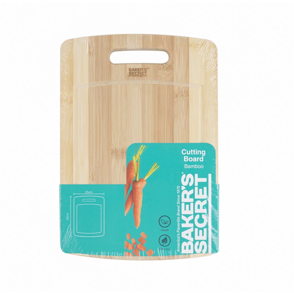 Hecha de madera de bamboo, la tabla de cortar de Bakers Secret es naturalmente resistente al agua y a los ambientes húmedos, por lo que también es resistente a las bacterias. Lo suficientemente resistente como para usarse como tabla de preparación y corte, pero lo suficientemente hermosa como para usarla como tabla para servir y se puede usar en ambos lados. Las ranuras de jugo integradas recogen los líquidos para ayudar a evitar derrames desordenados.