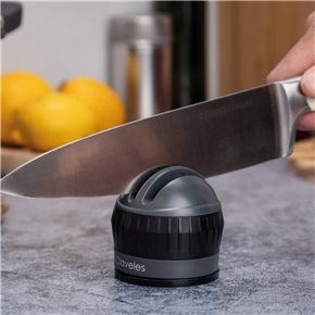 Afilador Cuchillos 3 pasos, Con ventosa, mucho más seguro y cómodo para afilar con una mano. 1) Barras con recubrimiento de diamante (Preparación del afilado) 2) Placas de carburo de tungsteno (Afilado grueso) 3) Placas Cerámicas (Afilado fino) No es apto para cuchillos y tijeras con filo de sierra.